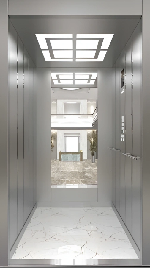 Le modèle FLUENT 180 incarne l’élégance moderne et une esthétique high-tech, avec ses miroirs fumés, revêtements noirs et éclairage LED. Les éléments en acier inoxydable miroir noir et le plafond en miroir découpé au laser créent une ambiance futuriste et raffinée, idéale pour les bâtiments commerciaux de prestige, bureaux exécutifs et résidences haut de gamme.